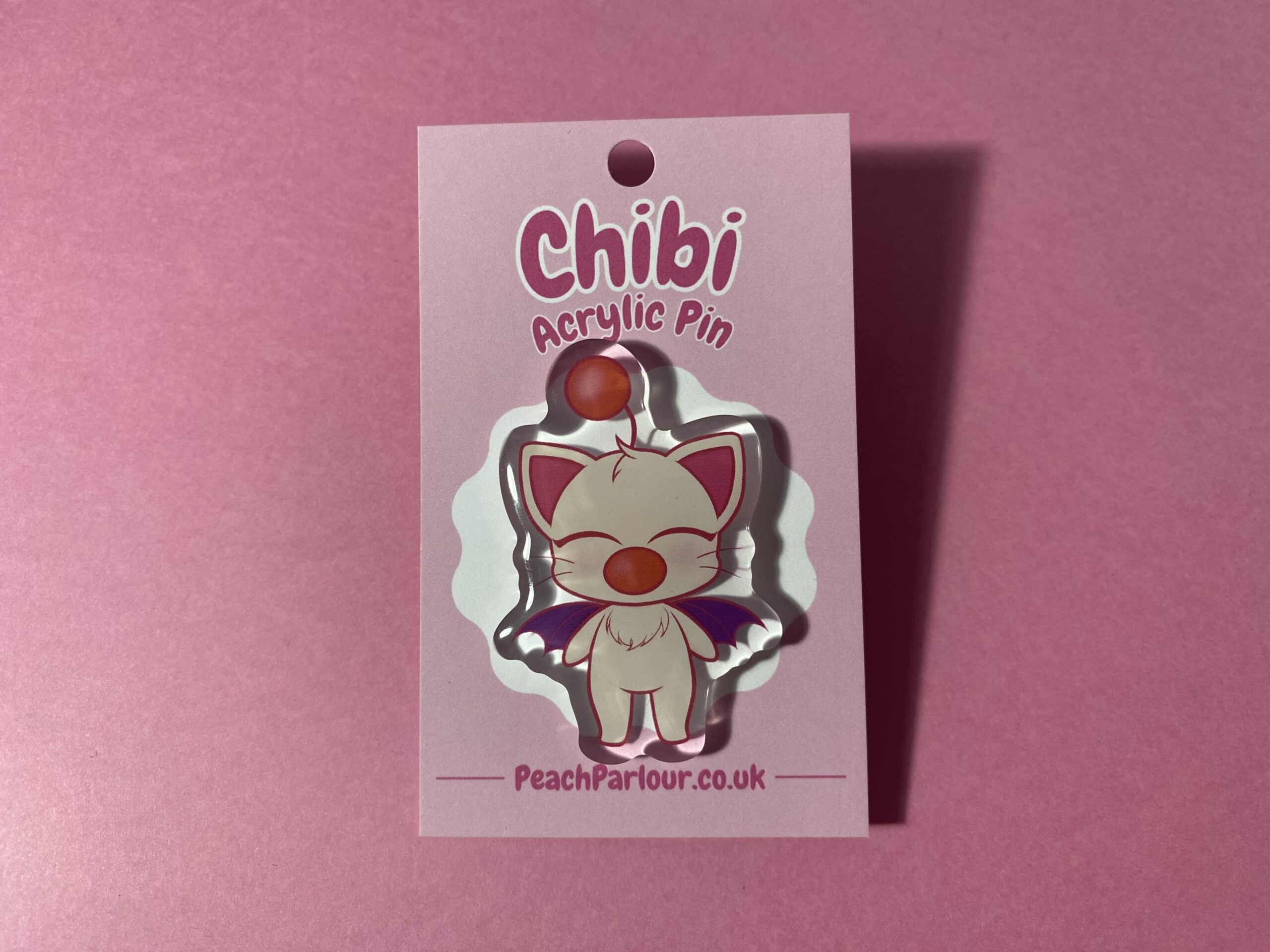 Final Fantasy/Kingdom Hearts acrylic pin, 2 inches. With a pink heart backing.