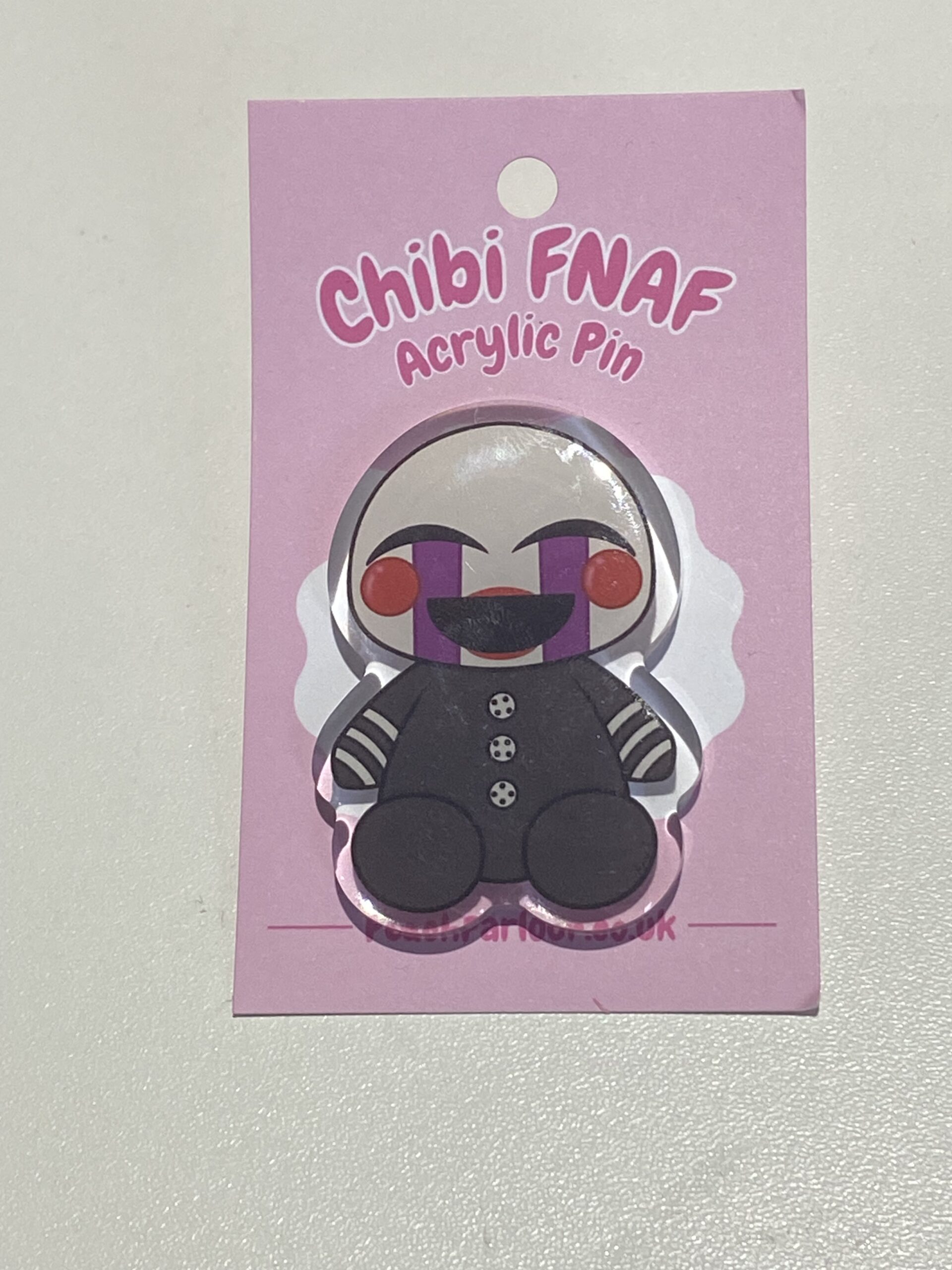FNAF acrylic pin, 2 inches. With a pink heart backing.