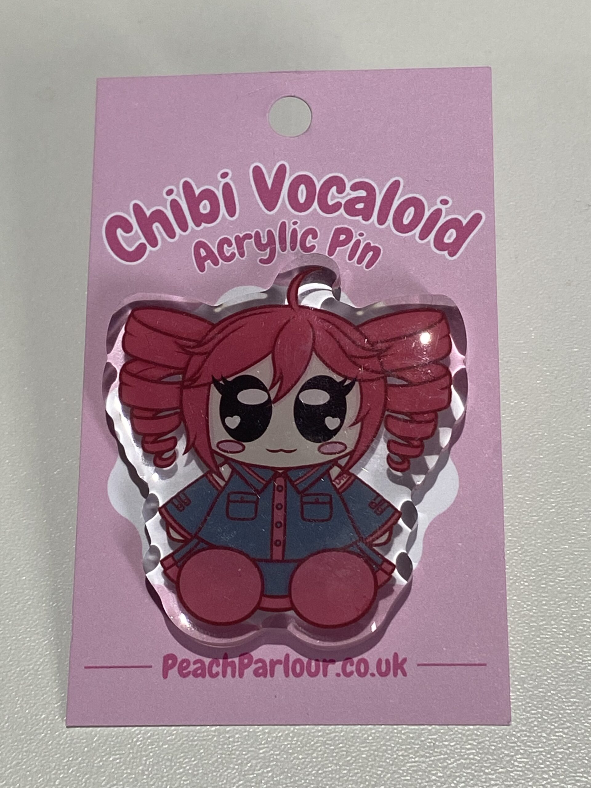 Vocaloid acrylic pin, 2 inches. With a pink heart backing.